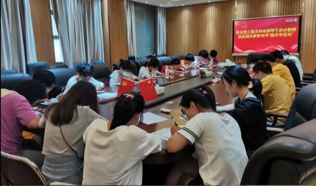 7月3日,本科生第三党支部在物理楼345会议室开展系列主题党日活动,支部书记龙欣琪同志主持,全体党员参加。本次活动共分三个部分,即“百年辉煌 青春献党”主题党课、回顾上半年党史学习教育并开展专题组织生活会和“庆百年华诞”手抄诗词文段活动。