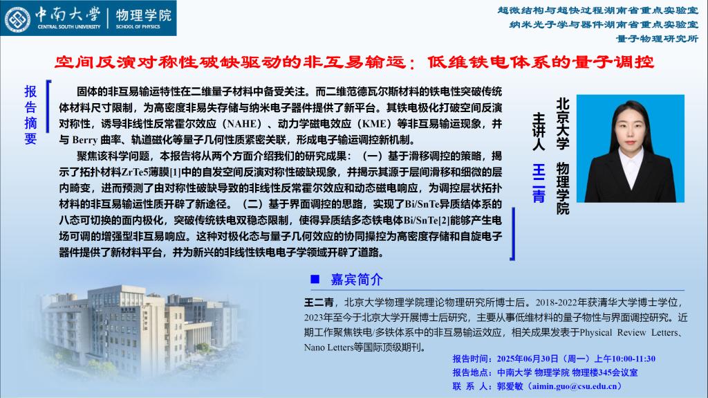 空间反演对称性破缺驱动的非互易运输:低维铁电体系的量子调控