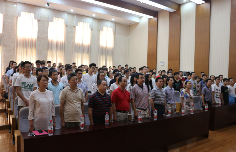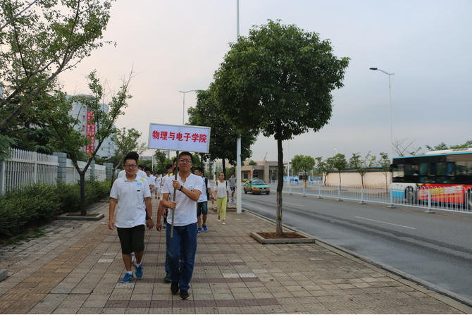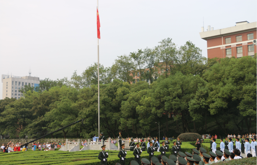 9月3日清晨6:30,初阳未现,物理院两百余名学生代表身着整齐的白衫于升华学生公寓集合,由院党委书记许宏武、副书记谢群与全体辅导员带队前往校本部参加纪念中国人民抗日战争暨世界反法西斯战争胜利70周年升旗仪式。
