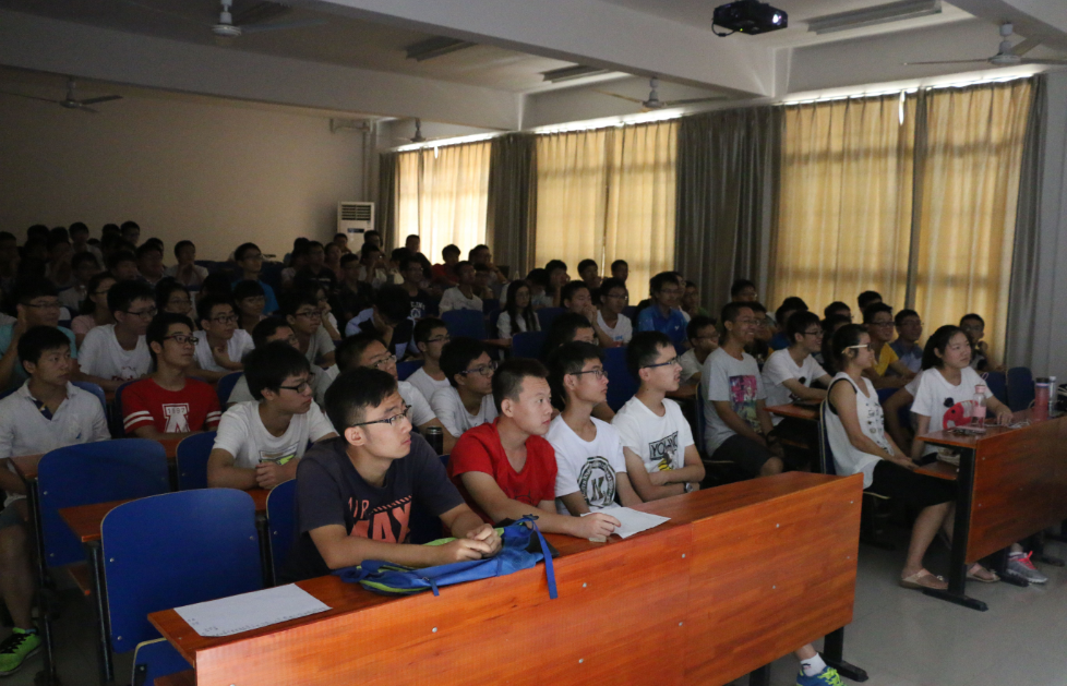 升旗仪式结束后,全体院领导、辅导员、班导师与全院1000余名学生、已到校15级新生及其家长在物理楼报告厅等六个多媒体教室集体观看了阅兵典礼。各教室座无虚席,急切的眼神难掩师生们内心的激动。当雄壮的国歌响起,大家全体起立,齐声高唱国歌。整齐划一的分列式引发同学们的阵阵欢呼,大家感叹祖国军事力量的强大,当最后一个空中梯队飞过天安门广场,数万只和平鸽和气球飞向天空时,教室里爆发出雷鸣般的掌声。