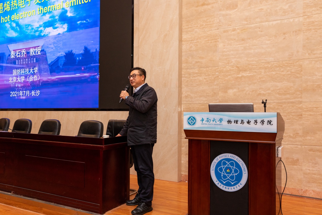 接下来,由秦石乔院长以“石墨烯热电子发光研究”为主题展开了专题前沿讲座:主要介绍了石墨烯热电子的研究意义与技术挑战,重点剖析了该领域的发展前景,引发了与会人员的热烈讨论;文双春院长以“从未来职业发展看今天如何读大学”为题,从人才培养层面提出了,未来职业发展需要怎样的品格和能力,从教师层面提出了,立德树人的成效就是影响和改变教育者,给研究生们上了一堂生动、感性的教育课。