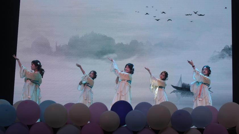 “烟雨入江南,山水如墨染”,一柄小扇,一袭汉服,五名女生为观众献上《烟雨行舟》,勾勒出清新、温柔的水乡画面;歌舞过后,小品《监考老师》幽默风趣地演绎出师生之间和谐、融洽的关系;春风得意是少年明媚模样,春风十里乃少年前路光芒,歌曲《春风十里》饱含学子们对未来的憧憬与希望。