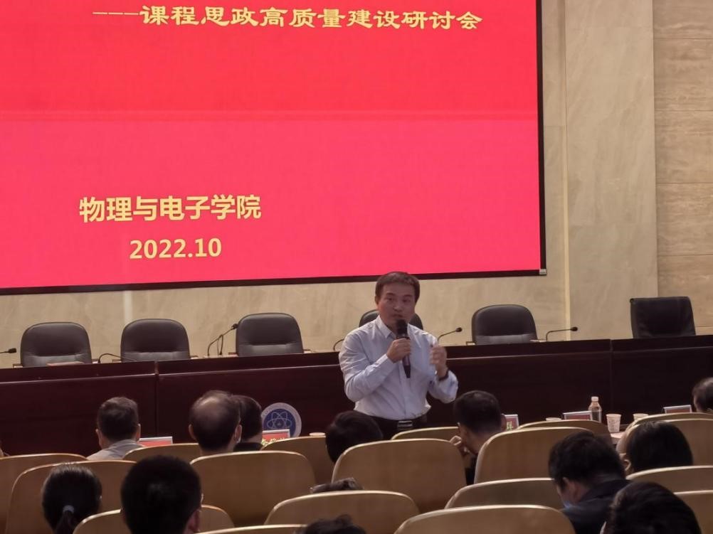2022年10月19日下午,我院在物理楼116报告厅成功召开2022年课程思政高质量建设专题研讨会。校督导李耀庄教授、彭立敏教授,必一·运动(B-Sports)官方网站李登伶书记、孙克辉院长等必一·运动(B-Sports)官方网站领导以及各系教学主任、青年教师参加研讨。会议由龙孟秋副院长主持。