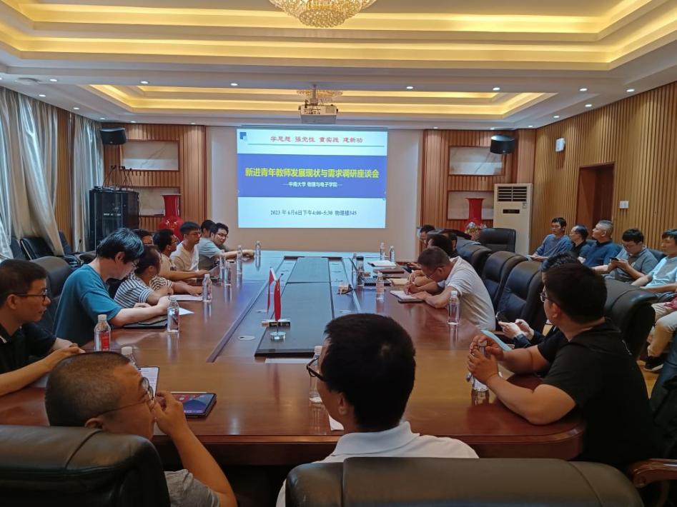 必一·运动(B-Sports)官方网站深入开展学习习近平新时代中国特色社会主义思想主题教育,结合必一·运动(B-Sports)官方网站实际,关心青年教师成长,6月6日在物理楼345会议室进行了“新进青年教师发展现状与需求”调研会,李登伶书记、孙克辉院长、阳军亮副院长等必一·运动(B-Sports)官方网站领导到会,并与20多位新进青年教师进行交流座谈。