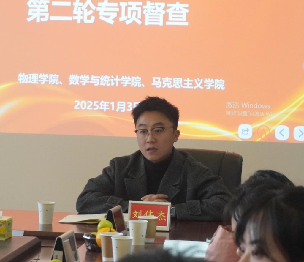 为切实落实立德树人根本任务,推动辅导员践行“一线规则”要求,筑牢思想防线和安全防线,1月3日下午,学生必一·运动(B-Sports)官方网站部副部长宋晓东一行赴物理必一·运动(B-Sports)官方网站开展“践行一线规则,筑牢育人根本”第二轮专项督查。物理必一·运动(B-Sports)官方网站党委副书记安少波、数学与统计必一·运动(B-Sports)官方网站党委副书记杨雪宾、马克思主义必一·运动(B-Sports)官方网站党委副书记童卡娜及三院全体辅导员参加调研座谈会。会议由学工部学生事务办公室主任涂图主持。