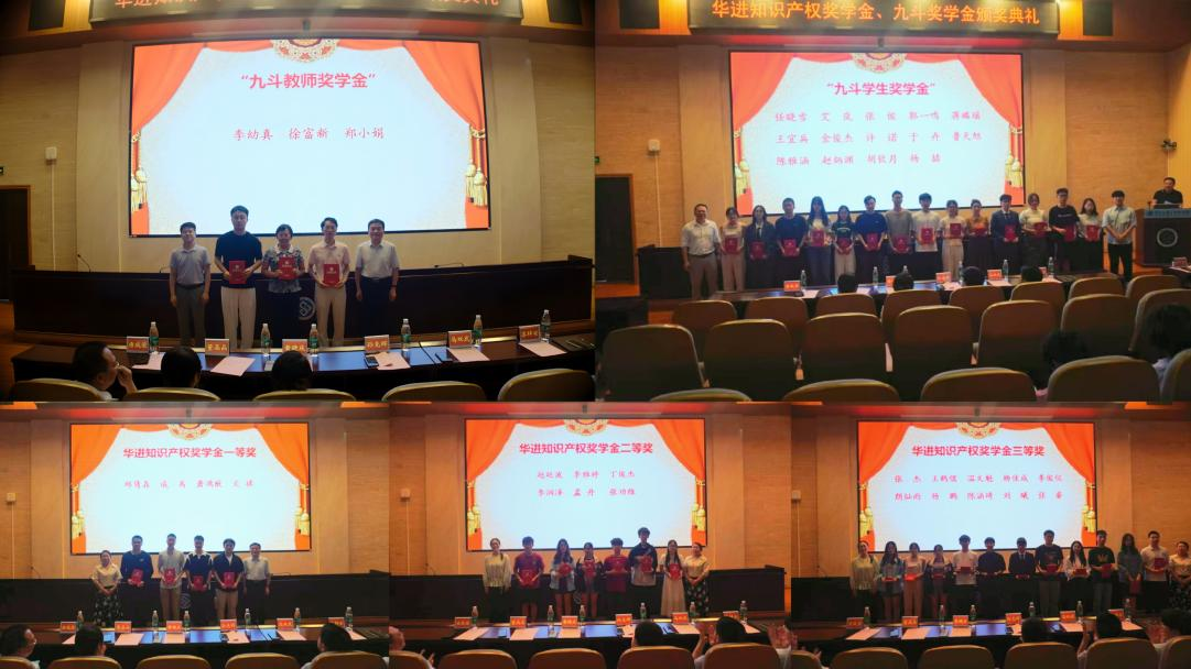 颁奖环节,与会领导嘉宾分别为获得华进知识产权奖学金以及九斗奖学金的37名师生颁发荣誉证书。