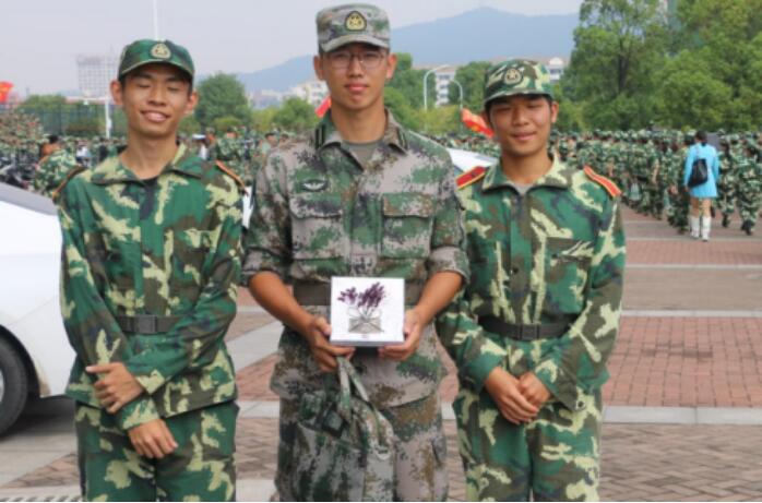 为了帮助同学们把想对连长、排长说却还没来得及或者不好开口的话都表白出来,我们心助会以寝室为单位,让同学们在正方形纸片上写下自己想说的话,折成千纸鹤,最后把全排的收集起来,放进用军训照片包装的精美礼盒中,作为礼物送给教官!