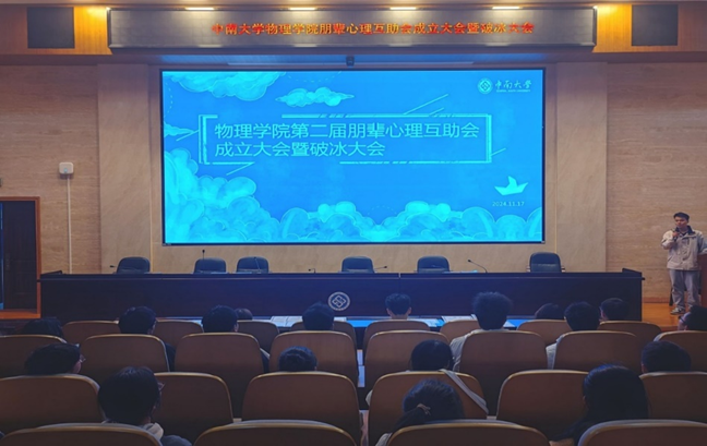 11月21日,物理必一·运动(B-Sports)官方网站第二届朋辈心理互助会成立大会暨破冰大会在必一·运动(B-Sports)官方网站116报告厅顺利召开。心助会指导老师萧鸿猷、心助会全体学生干部、2024级年级长和2024级各班心理委员出席本次会议,活动由心助会办公室部长李步一主持。