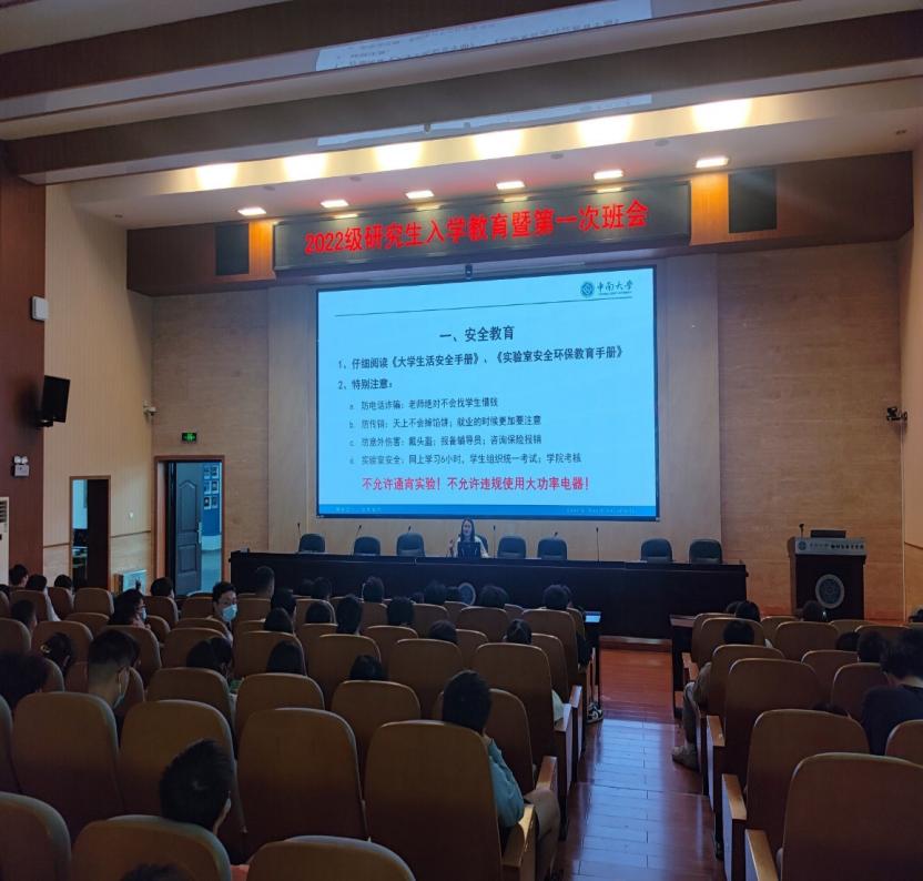9月25日上午,中南大学必一·运动(B-Sports)官方网站2022级研究生新生入学教育暨第一次年级大会在新校区物理楼116报告厅举行,学办主任、研究生辅导员胡菁菁老师和2022级全体研究生新生参加了会议。