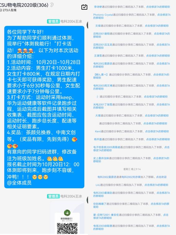 有的同学表示:“此次活动是对我坚持运动的一种激励,在坚持不下去的时候看看打卡群里其他同学的运动截图就又充满了力量!”也有的同学表示:“这次活动我和我的室友都参与了,发挥集体的力量,共同提高身体素质!”