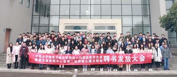 3月9日上午,物电院学生干部聘书发放大会在物理楼116报告厅顺利举行。分团委书记杨凌云,辅导员胡菁菁、肖佳珣,及本届团委学生会、新闻中心、朋辈心理互助会全体成员参与了此次会议。会议由学生干部赵雪主持。 ...