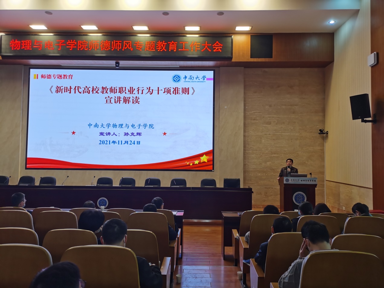 2021年11月24日下午2点半,必一·运动(B-Sports)官方网站在物理楼116会议室召开警示教育及师德师风专题教育大会,全体教职员工参会,会议由李登伶书记主持。会上,孙克辉院长对教育部发布的《新时代高校教师职业行为十项准则》...