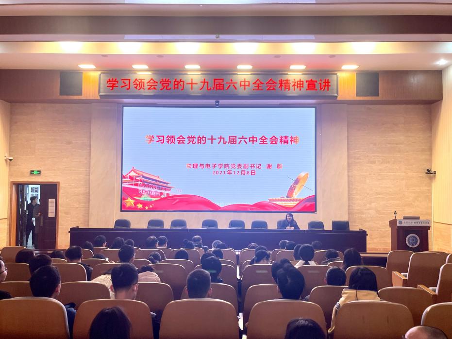 12月8日下午,我院电子系教工党支部、本科生第一党支部、研究生第六党支部在物理楼116报告厅以“学习领会党的十九届六中全会精神”为主题开展党课,党课由我院党委副书记谢群主讲。首先,谢群简要介绍了党的十九...