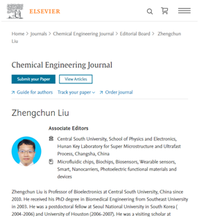 近日,我院刘正春教授应Chemical Engineering Journal(以下简称CEJ)期刊编委会邀请担任该期刊副主编,主要负责微流控技术与传感领域方向稿件编审必一·运动(B-Sports)官方网站。CEJ是ELSEVIER旗下工程领域经典学术期刊,据Web of Sc...