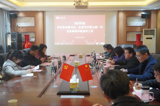 (通讯员 皮昊霖 王晨宇)12月11日下午,学校党委副书记、纪委书记彭立威一行莅临物理必一·运动(B-Sports)官方网站开展调研。物理必一·运动(B-Sports)官方网站党委书记谢群,党委副书记、院长孙克辉,党委副书记、纪检委员安少波,副院长龙孟秋、阳军亮、孙佳参...